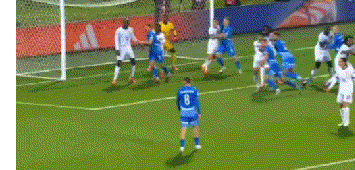 下半场第18分钟,迪涅妙传,27岁AC米兰悍将恩昆库在前场左侧得球,随后带球杀入禁区左侧,一脚劲射,将球送入了球门的右下角,帮助法国扳平比分。